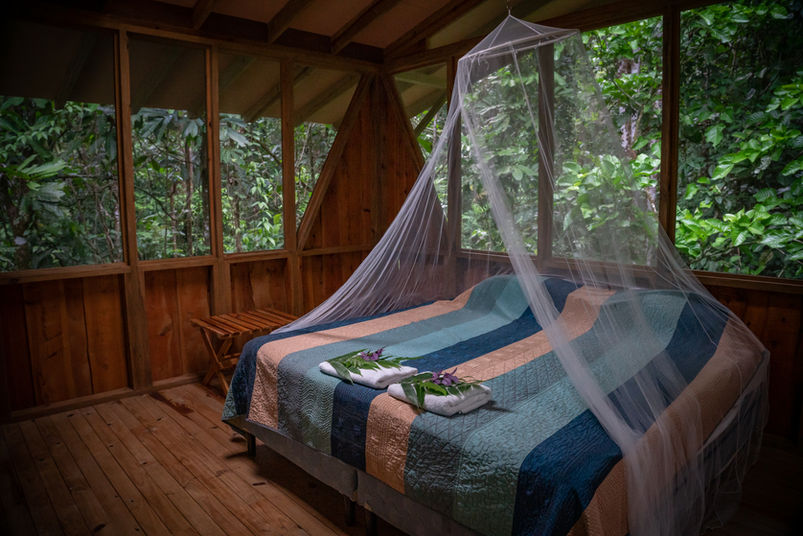 A guest favorite for many reasons...but mainly because of its close proximity to the car park. This beautiful two-story cabina is the first rental nestled on the Finca Bellavista red trail making it a 10 - 15 min hike at most. Features include a king-sized bedroom with 360-degree views, kitchenette, hot water shower, and balcony. Given the surrounding young forest, this home shares it space with local favorite animals such as Coatis, Toucans and the occasional sloth. Enjoy countless hours of birdwatching and reading from the generously sized front balcony. An occasional 3g connection is present at this home.